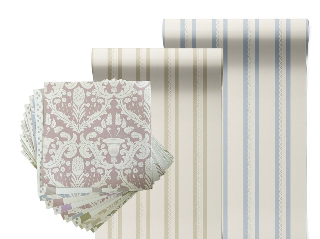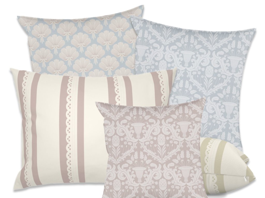 This design collection celebrates understated elegance. Soft anglaise stripes, delicate damask florals, and timeless details come together to create something that feels familiar yet fresh. It’s a nod to the comfort of home — layered, lived-in, and lovingly styled. If you’re drawn to cozy corners and meaningful touches, this palette will feel just right.