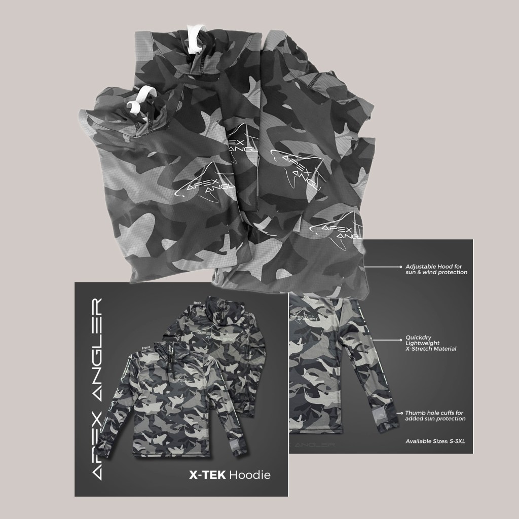 Custom made Hoodie Pattern Design as well as promotional material for Apex Angler. A premium apparel brand.